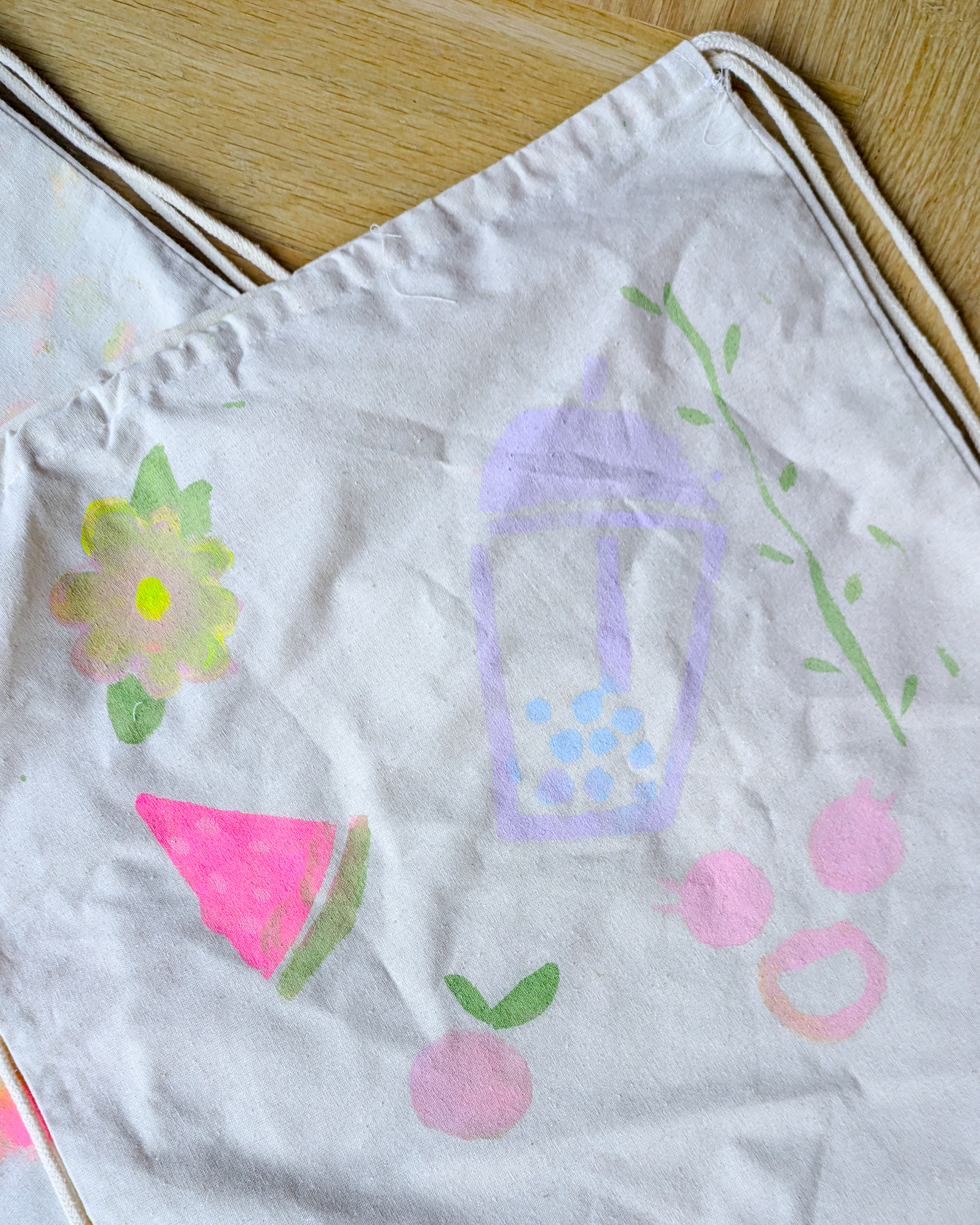 Tijdens dit feestje tekenen we ons eigen stencil ontwerp en knippen het uit. We gebruiken dit als sjabloon om te stempelen op een katoenen tasje. Na het drogen kan je het tasje thuis strijken zodat de verf er niet af gaat bij het wassen.